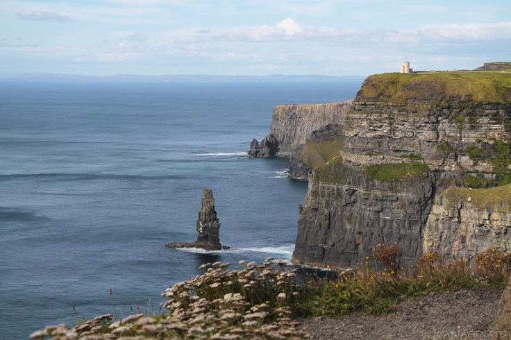 Le Cliffs of Moher, le scogliere a picco sull’oceano, sono ormai uno dei luoghi naturali più famosi e visitati in Irlanda per il panorama suggestivo che regala con qualsiasi tempo atmosferico ci sia, nonostante non siano le più alte d’Europa ma neanche le più alte d’Irlanda. Fanno parte della contea Clare, si estendono per 8 km e il picco più alto tocca i 216 metri circa. I sentieri percorribili sono delimitati da parapetti di roccia estratta nella zona e vari cartelli consigliano di non valicare i confini perchè è pur sempre terra e roccia che rischia di sgretolarsi.