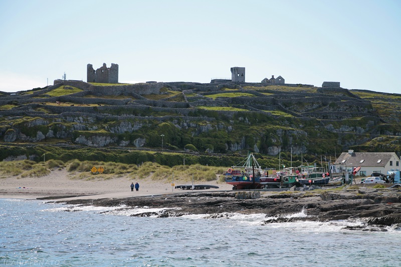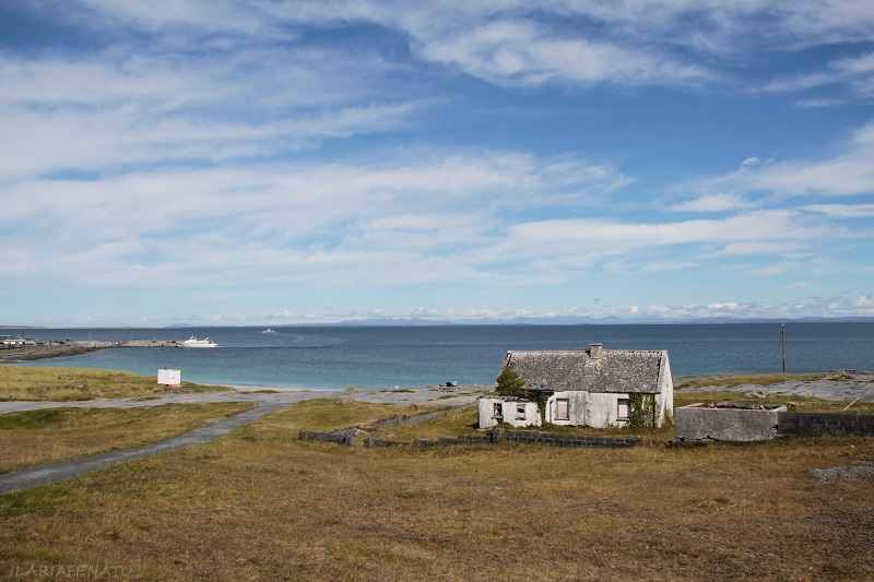 La prima isola che ho nominato, Inis Mòr, è la più lontana dalla costa ma la più grande. Infatti “Mòr” significa proprio “Grande”. Ospita 800 abitanti ed è ricca di luoghi d’interesse sia storico che naturalistico. Le sue scogliere, nella zona occidentale dell’isola, sono frustate sempre da un incredibile vento che accompagna i visitatori tra i muretti a secco ed i verdi prati.
