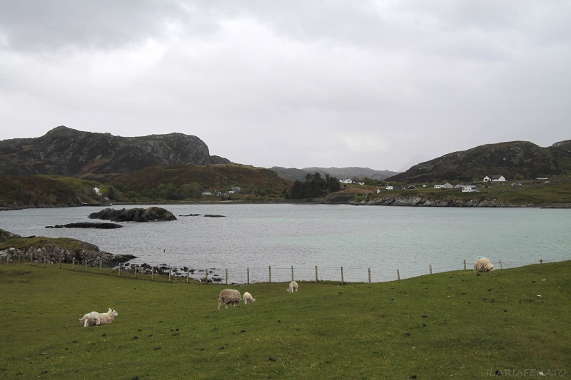 Lungo la località di Scouire, passando il cimitero si raggiunge un piccolo promontorio “Scourie More” per spaziare su tutta la baia e la spiaggia chiara. Protagonisti della zona sono gli animali che si incontrano lungo il percorso, pecore e mucche pascolano liberamente ignorando i visitatori e la bellissima vista.
