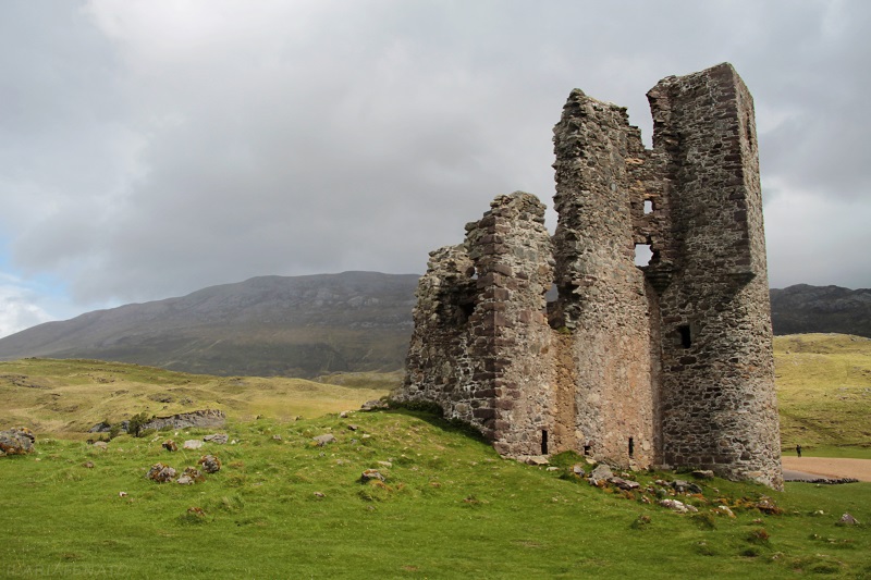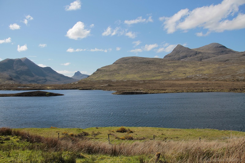 Piccola deviazione dalla costa per avvicinarci al Loch Assynt, lago lungo circa 10 chilometri e profondo più di 80. E’ conosciuto per la spettacolare zona in cui è situato, così selvaggia ed aspra, per il castello Ardvreck, la trota salmonata e un altro abitante mitologico.