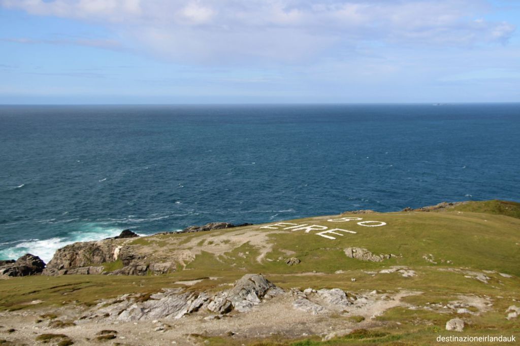 Capo Malin, dal gaelico ” Cionn Mhanna” si raggiunge con una poco impegnativa e panoramica passeggiata sulla scogliera ammirando le onde infrangersi sulle rocce sottostanti, varie specie di uccelli che planano sui nidi e le poche casupole in lontananza (che di certo non sono in astinenza di panorami mozzafiato!) A Malin Head troviamo una stazione metereologica, la scritta Eire a terra visibile dall’alto e una vecchia costruzione in pietra del 1805.