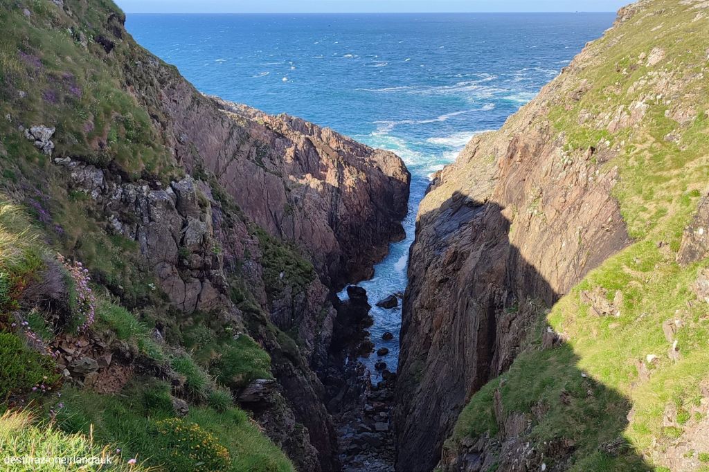 Prima di raggiungere la scogliera, lungo il percorso si incrocia il “Polifreann” o meglio conosciuto come “Buco dell’Inferno” un’insenatura che nasconde una grotta sferzata e divorata dalle onde forti dell’oceano, visibile anche dal margine della scogliera. Nei giorni particolarmente ventosi, l’ululato del vento crea un’atmosfera degna del suo nome. Il punto più alto della zona è conosciuto invece come “Banba’s Crown” dal nome della Regina pagana. Qui gli speroni di roccia che affiorano dall’acqua creano una suggestiva danza delle onde che lascia incantati. Io ho perso la cognizione del tempo mentre ero lì seduta a godermi il panorama cullata dal rumore dell’oceano e il verso dei gabbiani.
