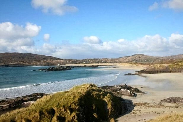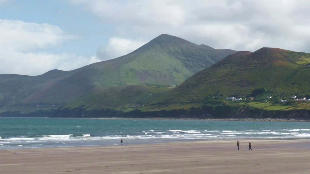 Proprio di fronte alla penisola Dingle nell zona Glenbeigh, una piccola deviazione conduce a Rossbeigh Strand: una spiaggia enorme di sabbia e sassi tondi modellati dall’oceano, colline verdi che abbracciano le dune di sabbia, stupendo luogo dove godersi il tramonto. Dal punto panoramico “Beach overlook” si riesce a scorgere la spiaggia gemella sull’altra sponda della penisola Dingle, la Inch Beach, un’altra lingua di terra che si protende nella baia.